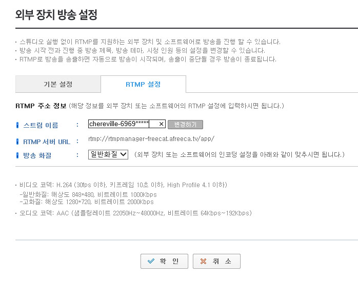 아프리카 TV에서 가장 문제점으로 꼽히던게 외부에서 받는 영상을제대로 지원하지 못했다는건데요~이번에 업데이트 되면서 RTMP로 영상을 받게 되었습니다.이로써 기존 유투브나, 유스트림, 라이브스트림과 동등한 퀄리티의 방송이 가능해졌고전문 방송장비에서 송출되는 영상을 받을 수 있게 되었습니다.RTMP 방송을 위해서 다음과 같이 해주면 됩니다. 먼저 아프리카TV에 로그인할 후 우측상단에 본인 아이디를 클릭해서내 방송국으로 들어가줍니다. 내 방송국으로 들어가서 왼쪽 메뉴들 하단에 보면"외부장치 방송 ...